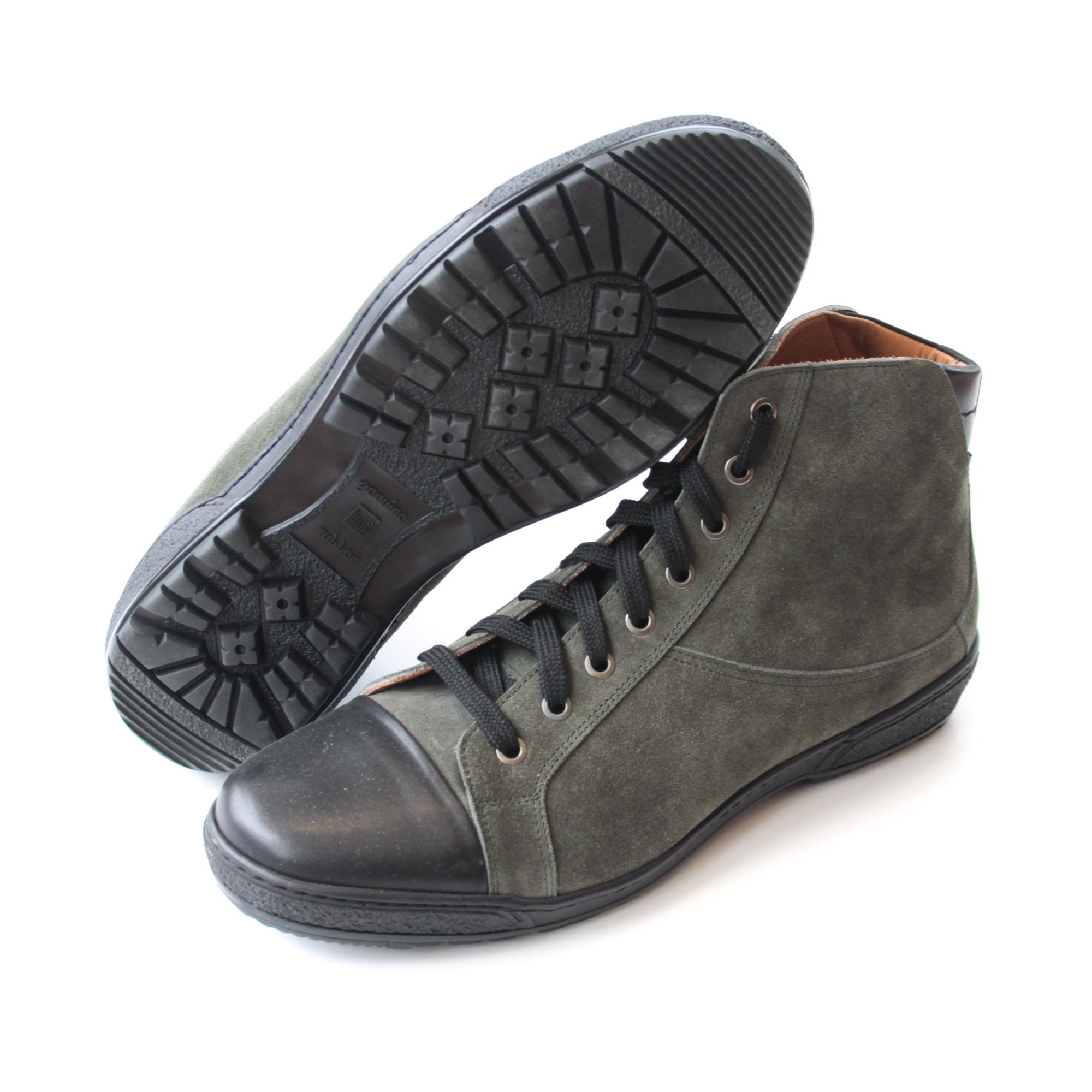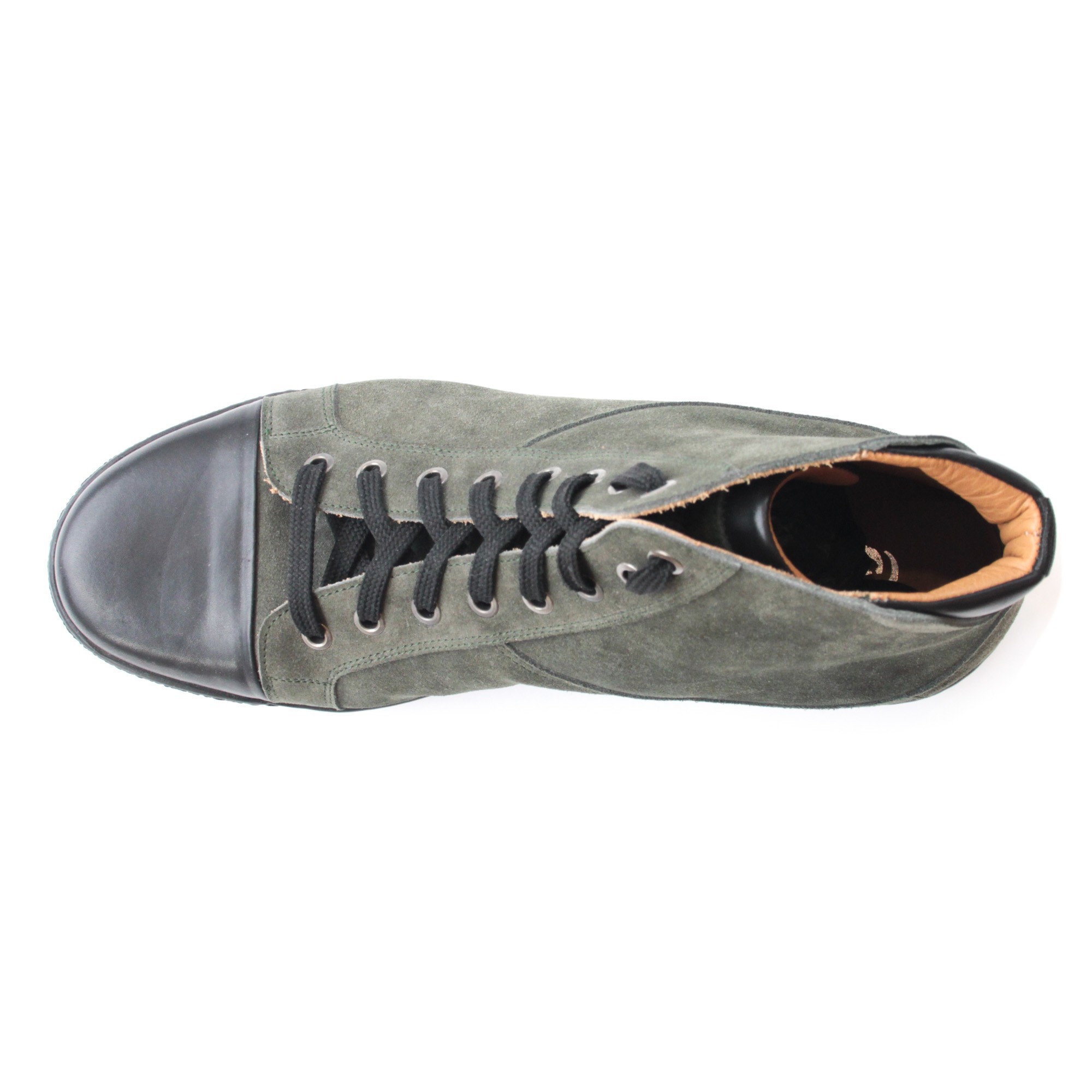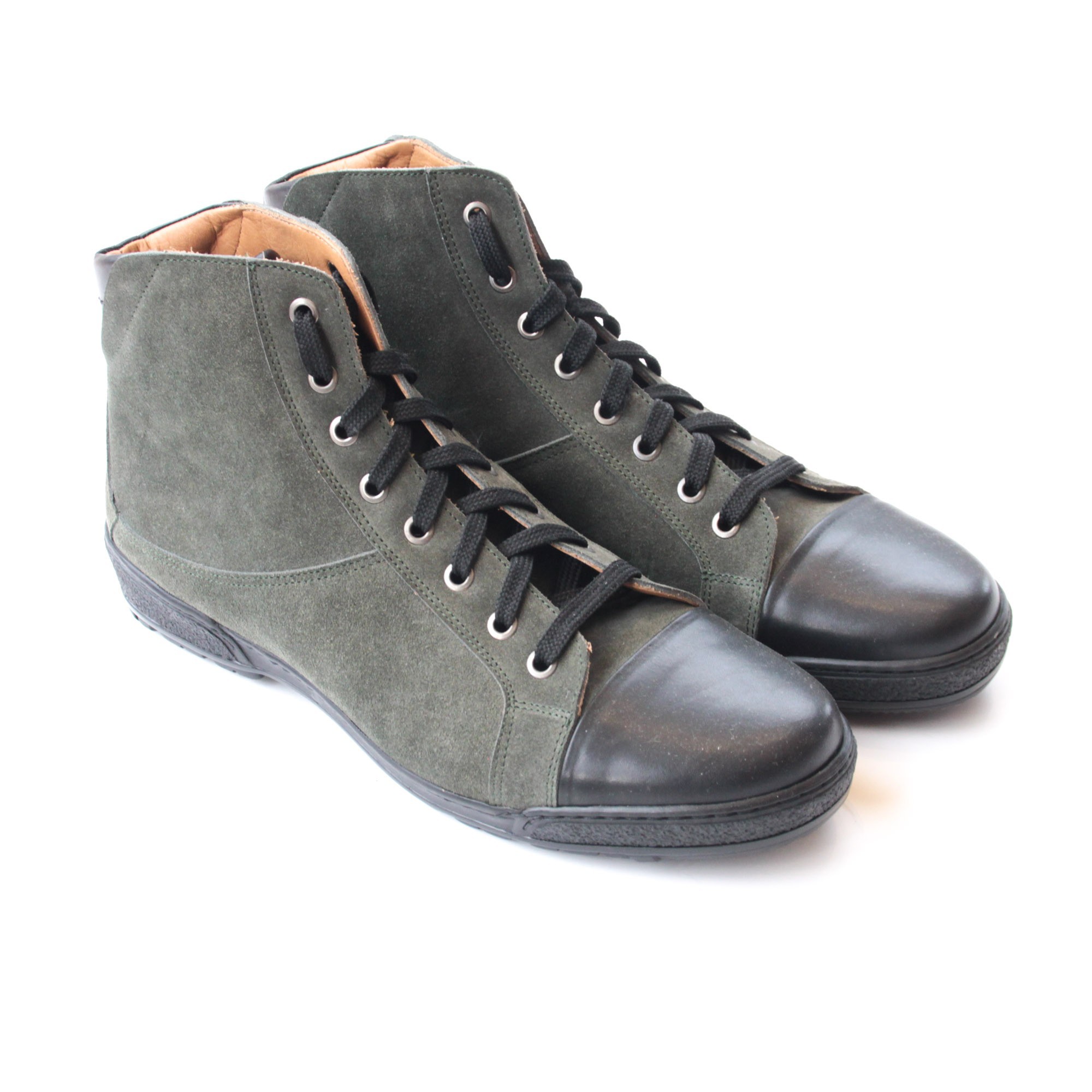 Scarpa sportiva da uomo, in colore verde bosco con punta in pelle nera.